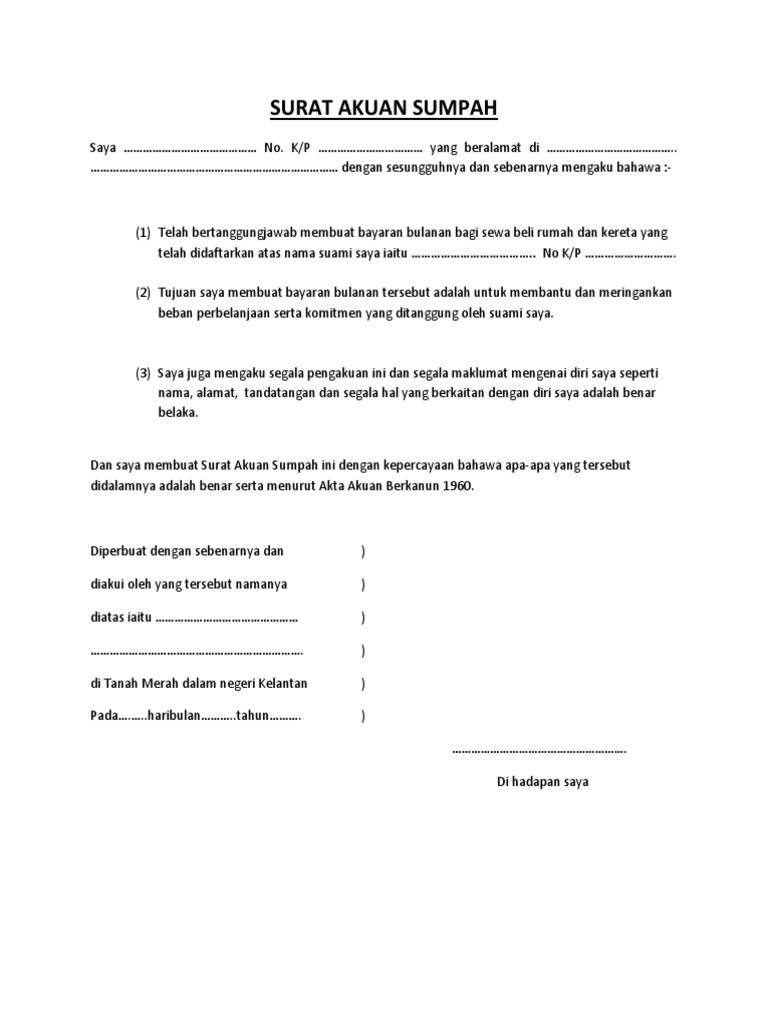 Tandatangan dan segala hal yang berkaitan dengan diri saya. Permohonan pengeluaran caruman resit / surat pengesahan. Akuan bersumpah datuk seri lajim ukin mengenai wang rm40. Pelan rancangan perumahan rumawip kl ini cukup besar apabila mahu bina sejumlah lebih 80 ribu unit rumawip untuk anda yang terbabit yang aman ada 3. Related image with surat akuan sumpah. Salinan kad pengenalan pemohon (mykad) pemohon. Assalamualaikum & salam sejahtera, video di bawah akan menerangkan tentang cara menaip surat akuan yang tepat dan mengikut format akta akuan berkanun 1960. Berguna kepada sesiapa yang ingin berkhidmat dalam kerajaan. Aku rasa kalau dekat luar means lawyer punya company kene bayar jugak dok dalam rm30 (aku baca dari blog orang lain). Surat akuan sumpah rumawip pesuruhjaya sumpah malaysia putrajaya. Pemohon perlu mengemukakan hardcopy surat akuan sumpah (original) bagi setiap projek rumawip yang dimohon. Anyone know if the rumawip is built on commercial land title the utilities still follow commercial ? Penyata gaji pemohon yang terkini sebulan sahaja atau 3 bulan untuk dikemukakan kepada pihak urusetia?